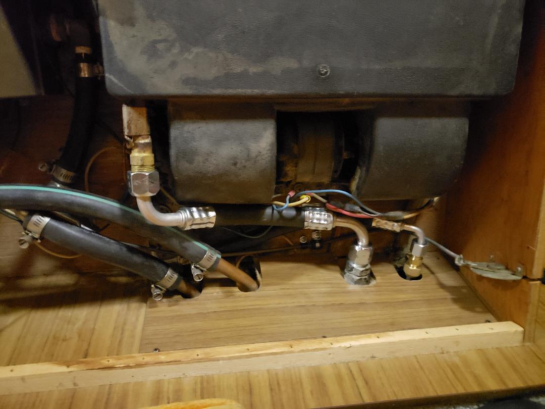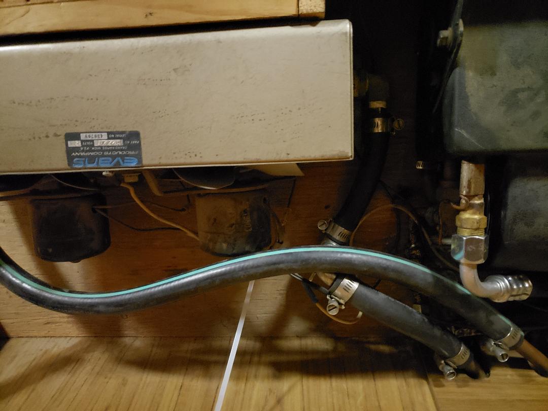 Used some aluminum I had for the bracket. | After a couple months on the road and later a bout with the 'plague' I'm back at it. Here is the 25" pusher fan (second try to get it right). As you can see I'm using an electronic fan clutch that Duramax vans used. Unfortunately, the LBZ PCM doesn't support the fan clutch so an aftermarket controller will be used. Because the controller is built for electric fans it will not be able to modulate fan speed. It will act as an on off adjustable temperature control with manual over ride. | Here is a shot of the rear a/c unit. I'm replacing all hoses/fittings and hope to get all back to OEM functonality. | Here is the rear heater with new hoses. I plan on cutting an access hole here although it has limited space. Probably 7" x 14". Anything should help. Found both front and rear heater shut off valves were frozen but managed to clear them both. I'm using Gates green strip hose throughout. A bit pricey but should outlast me. | ||