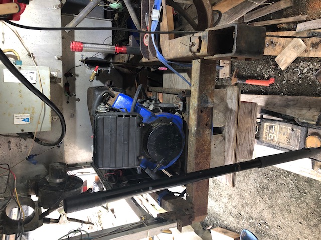 NOTE: The air to air intercooler install was abandoned in favor of a water to air system that is currently (Jan. 2024') installed in the coach. | After much deliberation I decided to follow Lenny's lead and delegate space beneath the genset as the 'Cooler-corner'. The only change I'll make is to place the fan on top, pushing air downwards so as not to suck road-dust etc up into the engine house. Here you can see this cooler is going to take every inch of space to make it fit. Yes, tongue-in-cheek going forward. | NOTE: The Yamaha 6000 genset has since been replaced with a 1982 Honda EV4000 generator that runs on LP. | Raised mounts tacked in place for a test fit. | ||