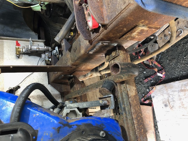 Back to updating the swap pics after my diff-diversion. Here the trans x-member and engine mount cross member (EMCM) are ready to go in ahead of the test-fit of the engine and trans. Again, I'm thinking I may beef-up the EMCM later. | With test fit underway this where I discover my EMCM clearance was insufficient. I'll need to raise the engine about an inch as the power steering pump is almost resting on the mount. I failed to take into account the amount the engine would 'sag' downwards onto the rubber mount bushings. Nearly 1/2" it appears. | ||||