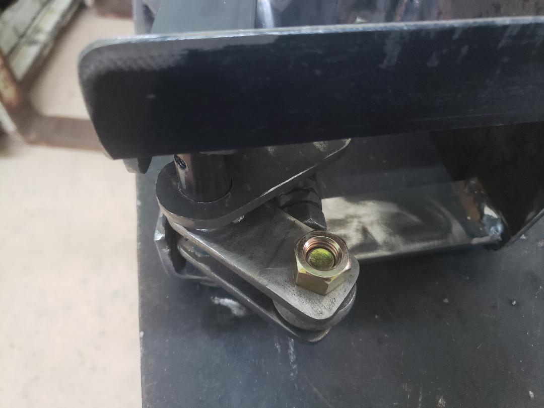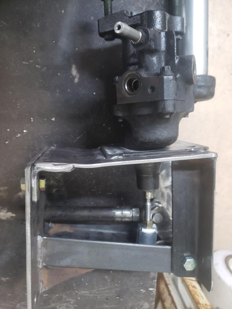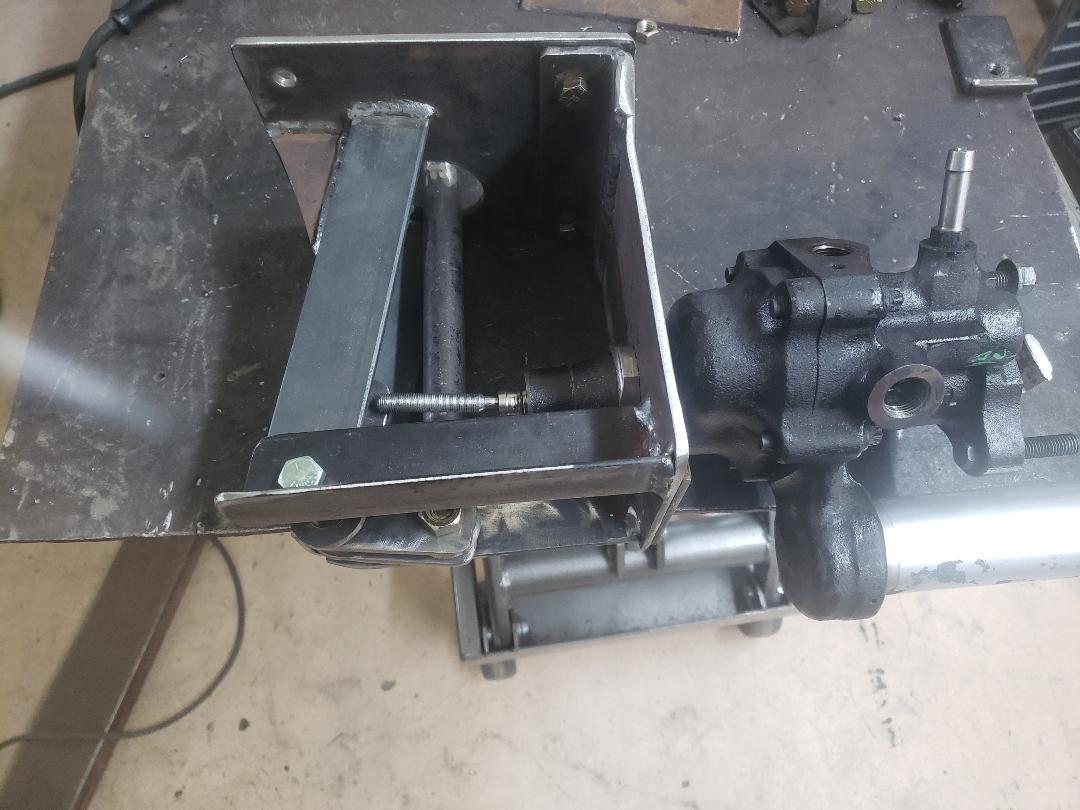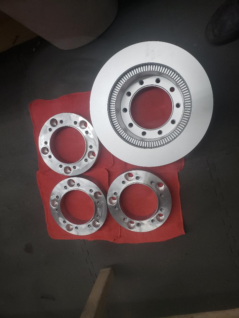 Here are the adapters for the disc brake conversion. Lots of chips made in the process. You can see the rotor sitting on one of the adapters-real bonus, the holes all lined up perfect. | I decided to go a different direction with the brakes. I built a bell crank to mount the hydro boost and master cylinder to the left 90 degrees. This will mount in the same location that the OEM master cylinder resided. By using a single master cylinder that was matched to the trucks calipers everything should work in tandem. A bunch easier to bleed this system for sure. | Here is how the unit will mount. | Here is the bell crank. I used Oilite bushings and added a grease fitting just for ducks. | ||