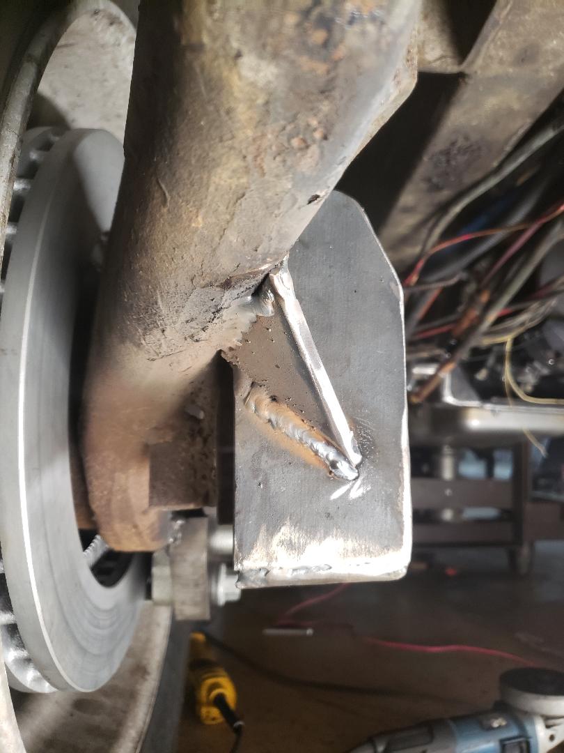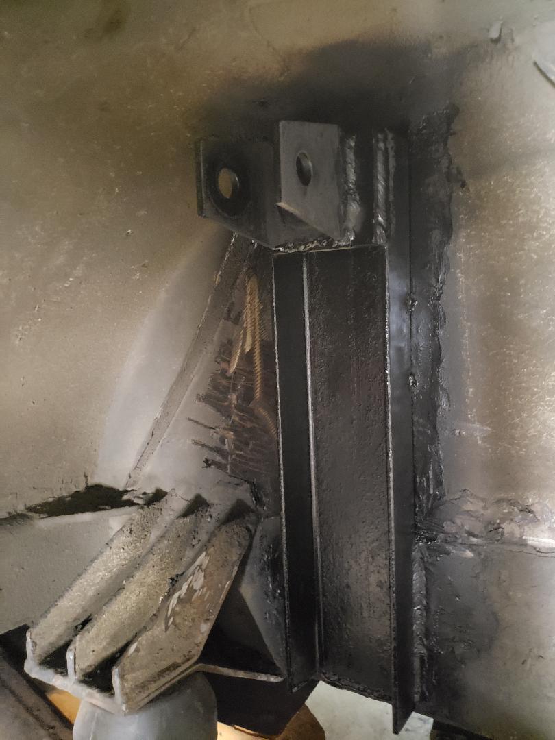 Here's a before and after of the half shafts. What a mess, half a day to clean them up. Not my favorite job for sure. | OEM? shock mount. Must have been a bad day for the 'mechanic' to do it this way. | While in there I decided to beef up the lover shock mount. These are notorious for bending so this 'should' help eliminate that problem. | Front side of reinforcement. | ||
