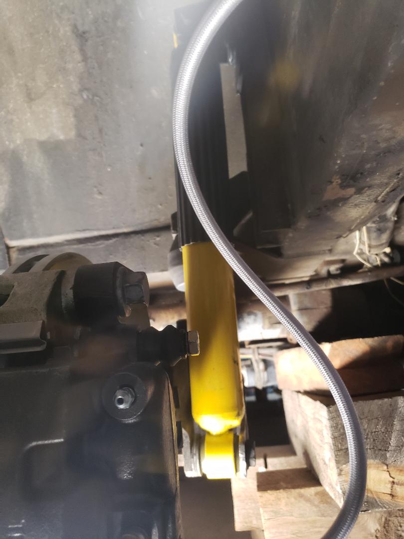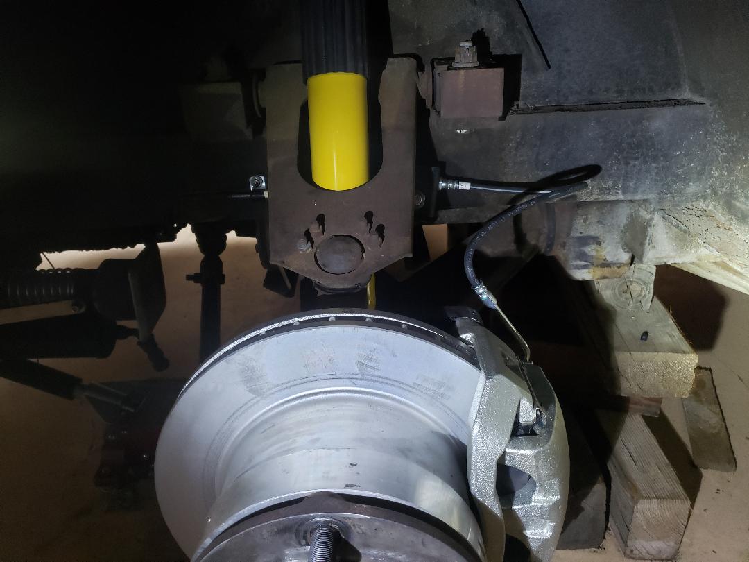 (1 Comments) New upper shock mount. I'm using longer rear shocks and needed to raise the mount to avoid U-joint bind. Project kreep keeps raising its ugly head. | Finally got the last fittings and finished the brake lines. Had to make a couple of 90 degree brackets to redirect the front brake hoses. Bleed the brakes with DOT5 fluid so hope that project is complete. Got the new front shocks mounted also. | (4 Comments) Here you can see the improved shock angle and the barely see the lower re-enforced shock bracket. | Got the fans mounted for the CAC radiator. These were used on 1995 VW Sciracco's as is the radiator. Unusual in that the main two speed fan, belt drives the secondary fan. The high speed will be trigered using a thermo switch that comes on at 140, off at 125. | ||