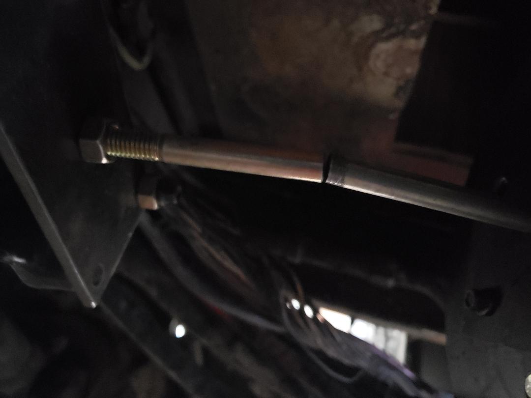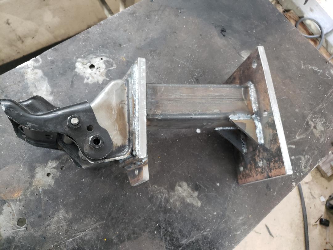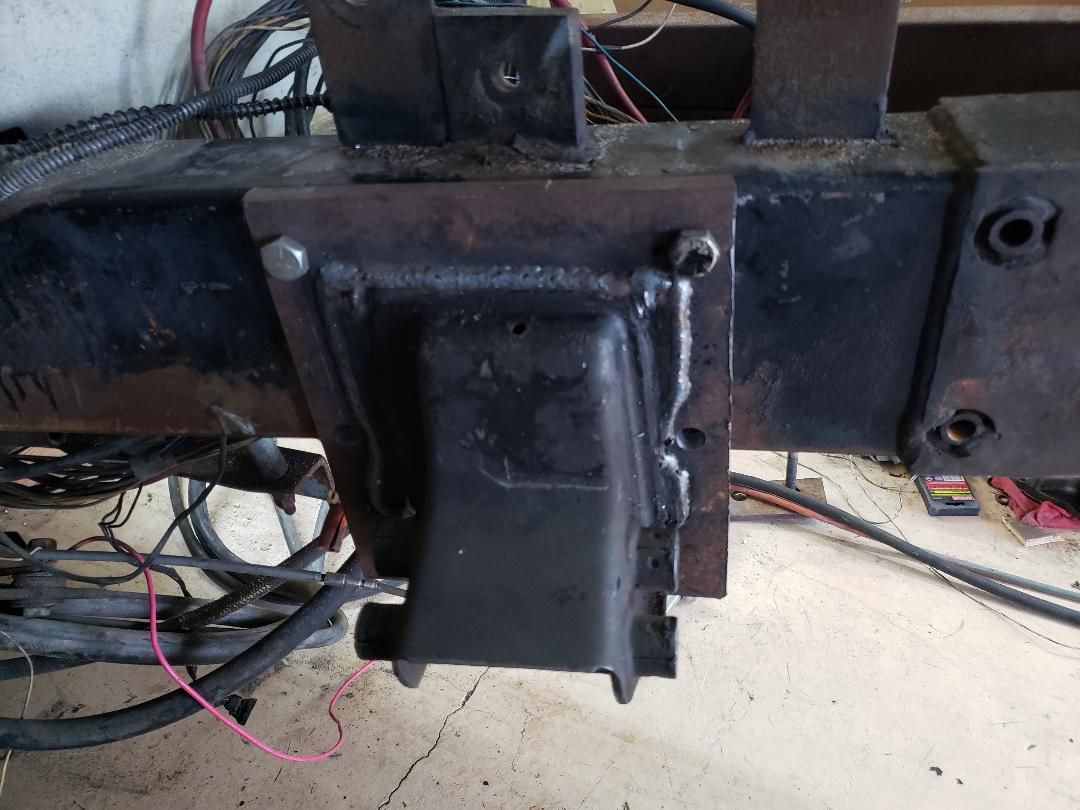 Another view of the pass side mount. | This backing plate will go on the inside frame rail to distribute the load. | Here's the bracket installed. | Home made alignment tool.Look's pretty close. | ||