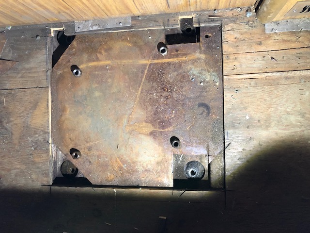 (1 Comments) Took measurements from underneath using the forward end of the fiberglass trans tunnel (end of tape butted against it) to figure where to cut the floor. If you do this, use a skilsaw with the blade depth at about 5/8" as the sheetmetal is directly beneath it. | In the end, I had to make a couple of additional notches over the two nuts closest to the bedbase wall. Drilled a jigsaw pilot-hole from above where I anticipated each of the nuts were, then with a metal blade jigsaw, cut out all four corners.(Note: there's hoses and shit under the floor so be certain of blade clearances BEFORE you cut) This will be a real easy floor fix when I'm done, and the procedure saved me huge time and effort. | ||||