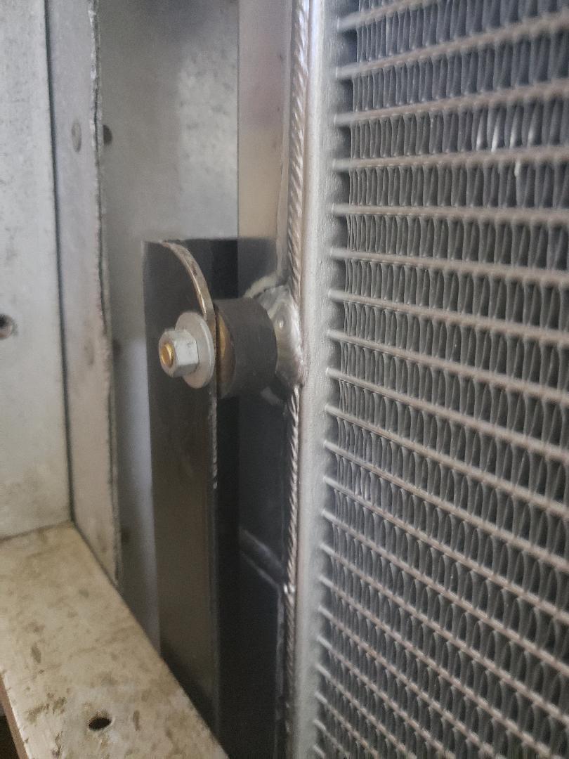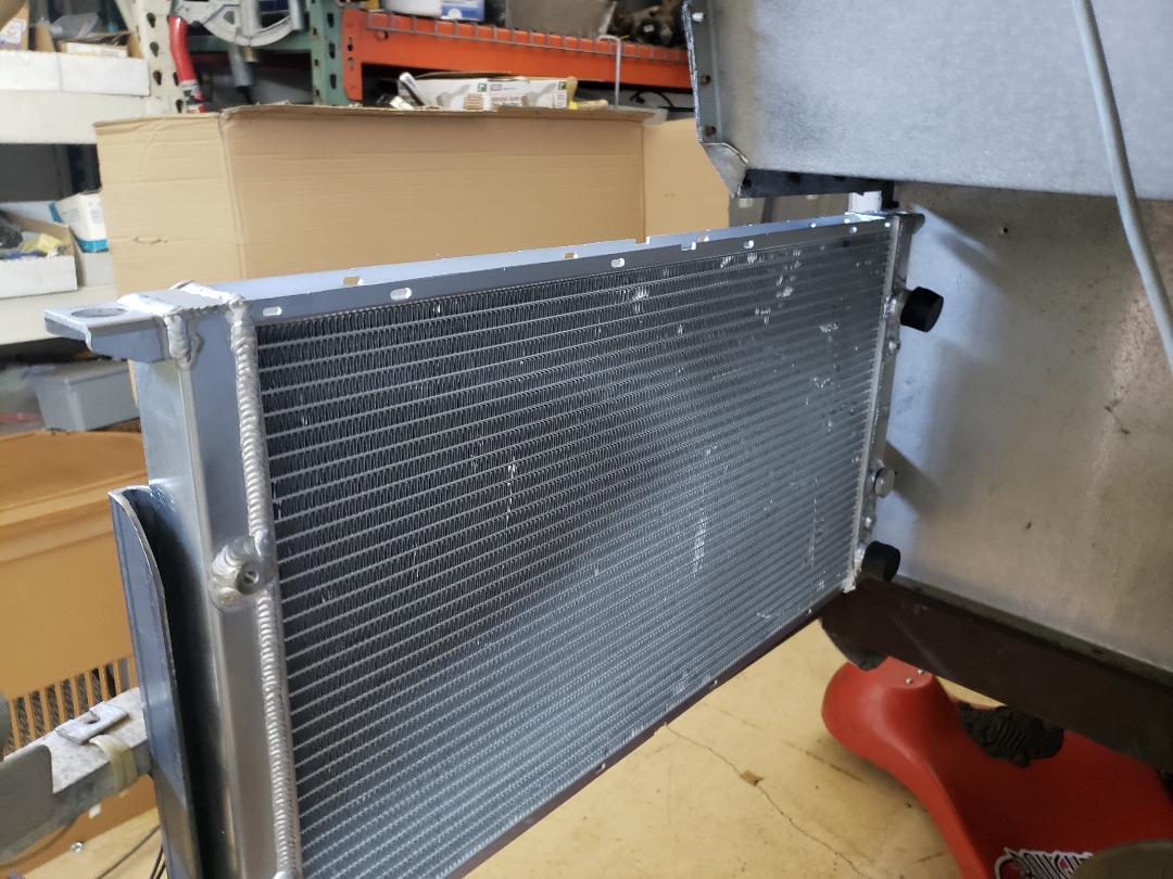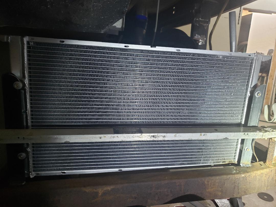 (1 Comments) The fuse panel location is pretty much dictated by the harness length if you don't want to lengthen a load of wires. You can see the engine PCM as well as the transmission computer. I used a PCM mounting bracket from a Duramax Van and the stock fuse box from the donor truck. Busy corner. | here's the CAC radiator. The radiator extends below the door lovers (the aluminum horizontal you see ) so I'll put a few openings in the lower fiberglass for more air flow | Here you can see the isolation mounts for the heat exchanger. Finding high temp, oil resistant mouunts that can be used in shear was an issue. | A look at the shift cable bracket. | ||