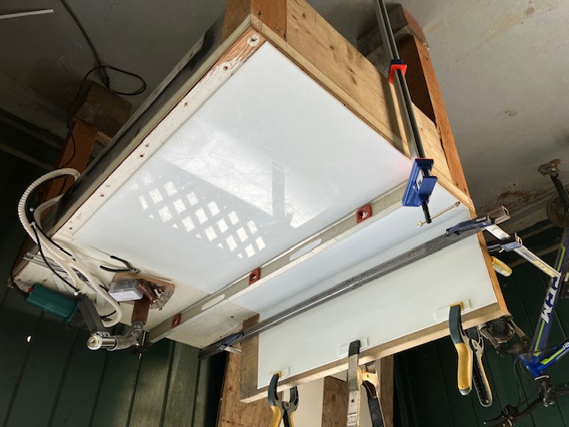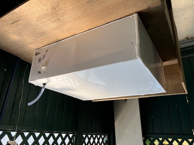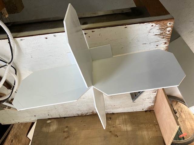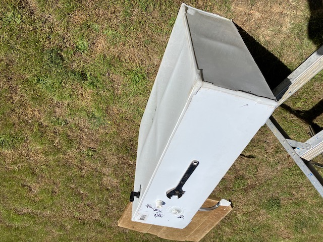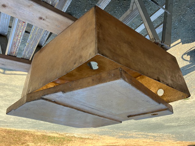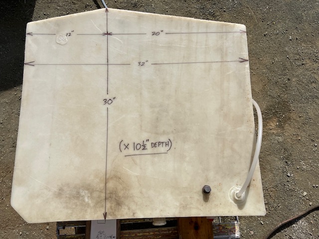 On the early coaches you got a 38 US gal forward tank beneath and forward of the front spring. This is the fiberglass housing that encased the tank and insulation around it. If you can get one of these somewhere it'll make your job easier... sort of. I ended up making my own tank and elected to make it 1/2" or so taller which necessitated getting rid of the upper lid which then didn't fit. | Here's one of the early forwards tanks I got from buddy, Jay, in Wa. along with the housing a few yrs back. Fittings on this one leaked badly and regardless of my best efforts to weld them up to stop the leaks I was unsuccessful and had to toss it. I would learn later that 50-ish year old HDPE simply isn't worth the time or trouble to repair and expect any useful service out of it. I'm posting some dimensions here as well for future reference. | I decided to learn to do plastic hot-air welding to build my own tank. If anyone decides to follow along and make their own tank - THEY DO SO ENTIRELY AT THEIR OWN RISK. This post in no way is intended as an instruction publication on how it should be done. It's merely my account of how I did it and the issues I encountered. | Got me a hot-air welder, a 4x8' sheet of 1/4" HDPE, a bunch of 3/16" x 3ft. wht. HDPE welding rods,bucked out all the pieces on my table saw and with the scraps I welded up this contraption to see if my very first corner-weld would hold water. Well, it did... for 3 days till I dumped it out, then satisfied my plastic welding apprenticeship was successful. What a pile of shit that notion turned out to be. | ||