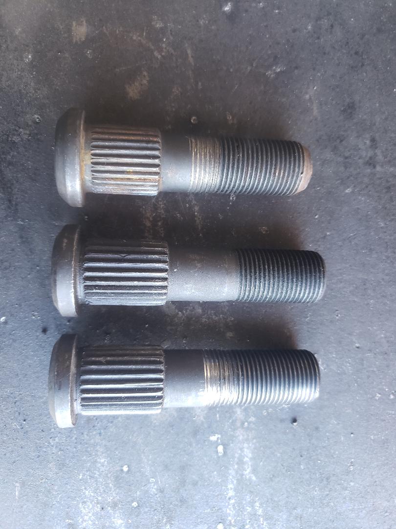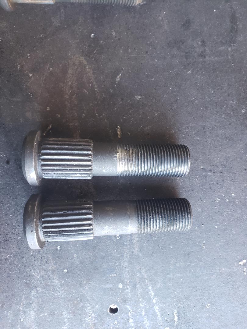 (1 Comments) Here's a comarrison of the studs. The top one is the one that came out of the front. The next one is the new longer stud and the bottom one is modified with more threads cut. The upper is a BWP M187( actually this one is a left hand thread that was removed and appears to have had threads cut in it also), the longer one is M-186. The M-187 fit the front without modification. The M-186 I'm using on the rear. | You can see the additional threads I cut to be sure the rear inner nut doesn't bottom out. | Here is the right rear bracket. | This is the right rear again. | ||