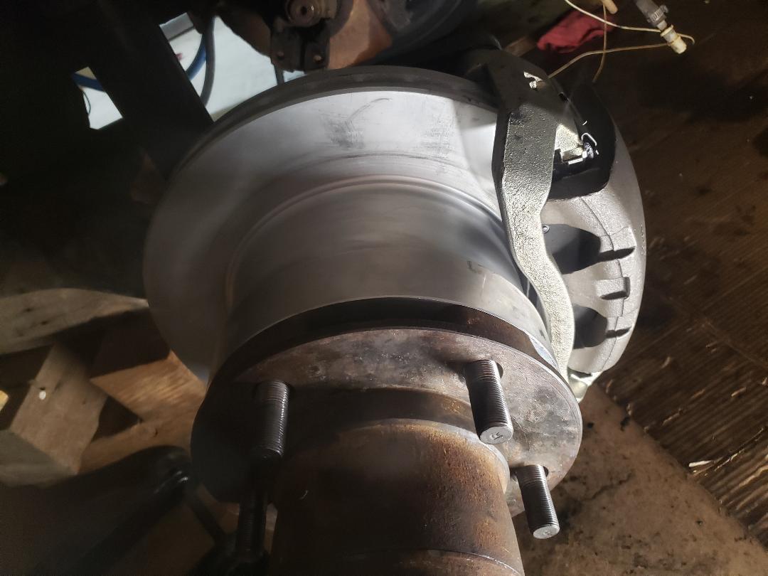 Back from Quartzsite and back to work on the 'project'. This is the first disc mounted, right front. The clearance to wheel is really,really tight. Not much more than 1/16". Lots of fit up to get everything right. | Here's the bracket. | The second one went a lot faster. | Drivers side mounted. | ||