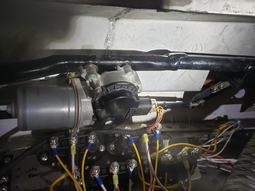 Here is a shot of the relays for the levelers. I haven't been able to find any information on the levelers themselves and Lippert won't respond to my requests. Wish me luck figuring out the 5 wire system. | After trying to de-rust the heater control valves only to have them return to their previous difficult ways I decided to try and find a replacement. These are close enough for the rear heater and should work for the front also. It may require a longer cable but it looks ok now (with the dash still out). | Close enough. | I removed the dual wiper motors and have installed a single motor used on the Silverado donor truck. This allows the stalk mounted switch to operate the wipers along with the adjustable speeds. There really is very limited space which makes it critical getting the needed clearances. | ||