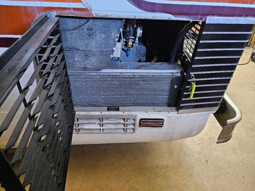 About all that's needed now is the sound absorption material. | Here's where the engine intake air comes in through the drivers side grill. | Because I'm using the stock air filter it was necessary to adapt the 8 1/2" filter housing down to a more manageable 5". | New A/C unit, 18,000 BTU that uses a technology similar to inverter types. Variable speed both fan and compressor. 11.6 max amp draw. You can see one of the new aluminum vent caps to the lower right. The roof is going to require a BUNCH of work as you can see. | ||