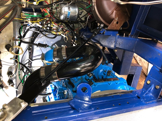 (2 Comments) I was forced to improvise another perch for the rad angle-strut on this side in order to clear the CAC piping. Yeah-yeah... I'm still working on the birdsnest of wiring, but it's coming along. | Starboard side mount. This was stupid easy as I simply welded a gusseted angle-bracket right onto the chassis frame. | One 3/8" bolt on the upper corners each side and two more on the lower mount each side and the works lifts right out. | |||