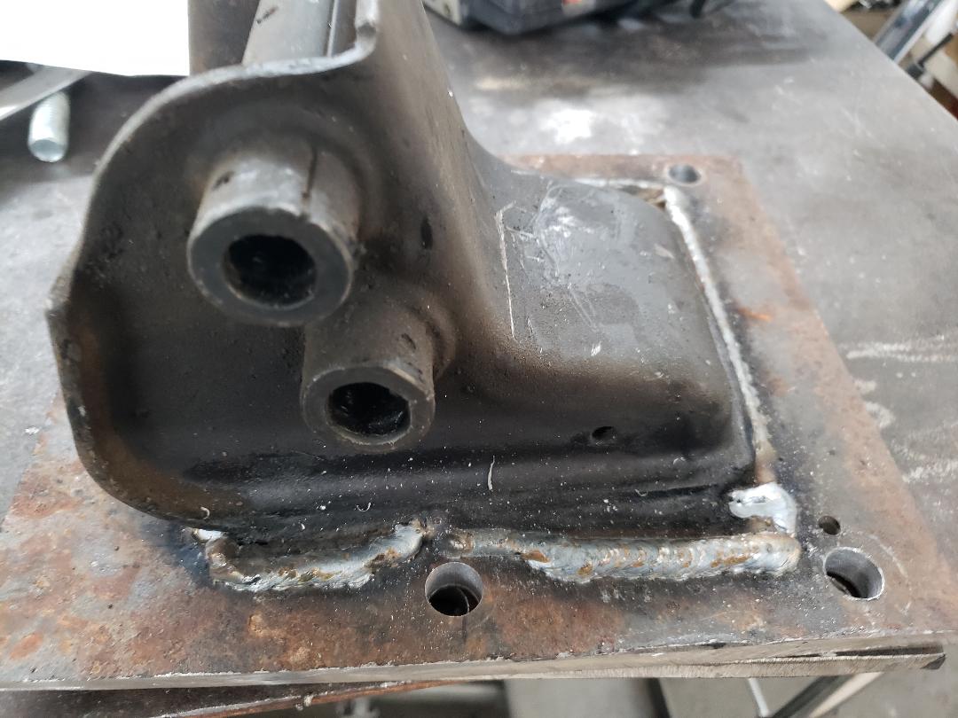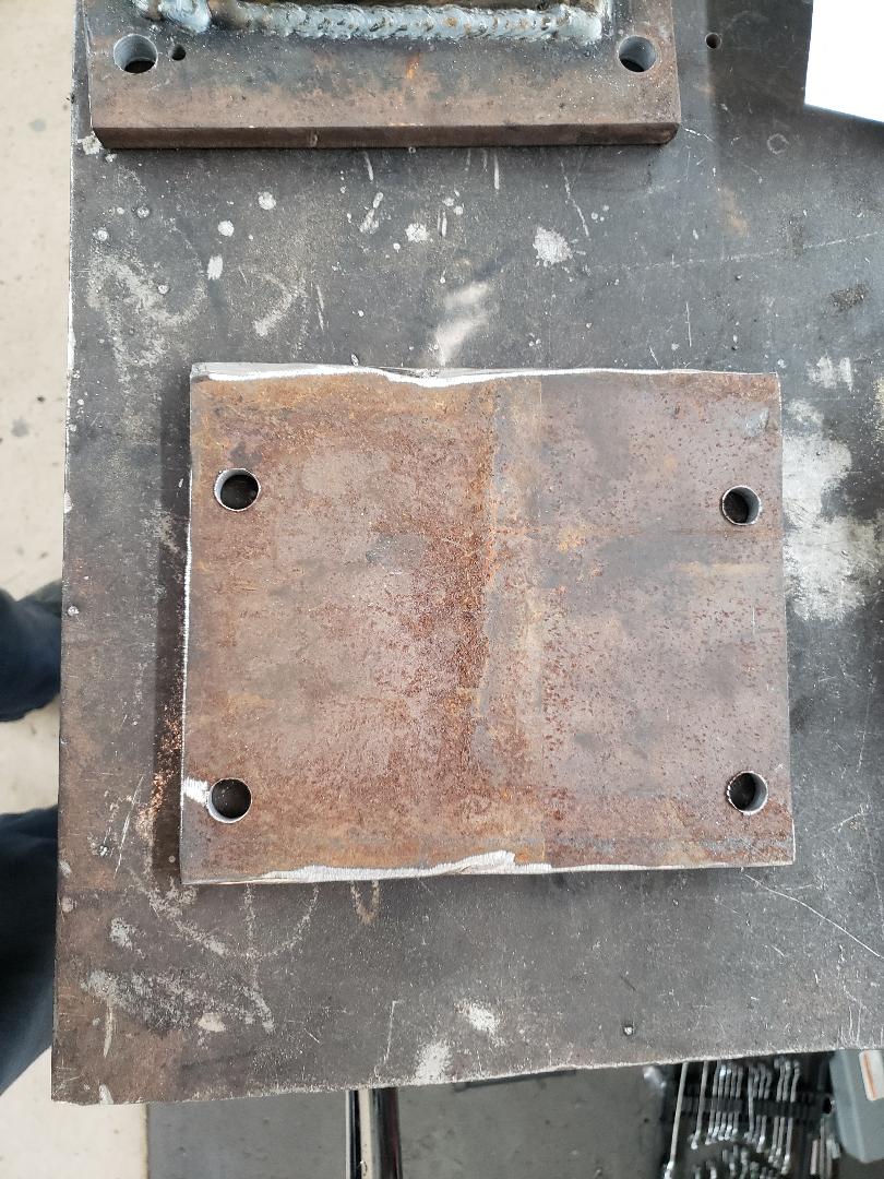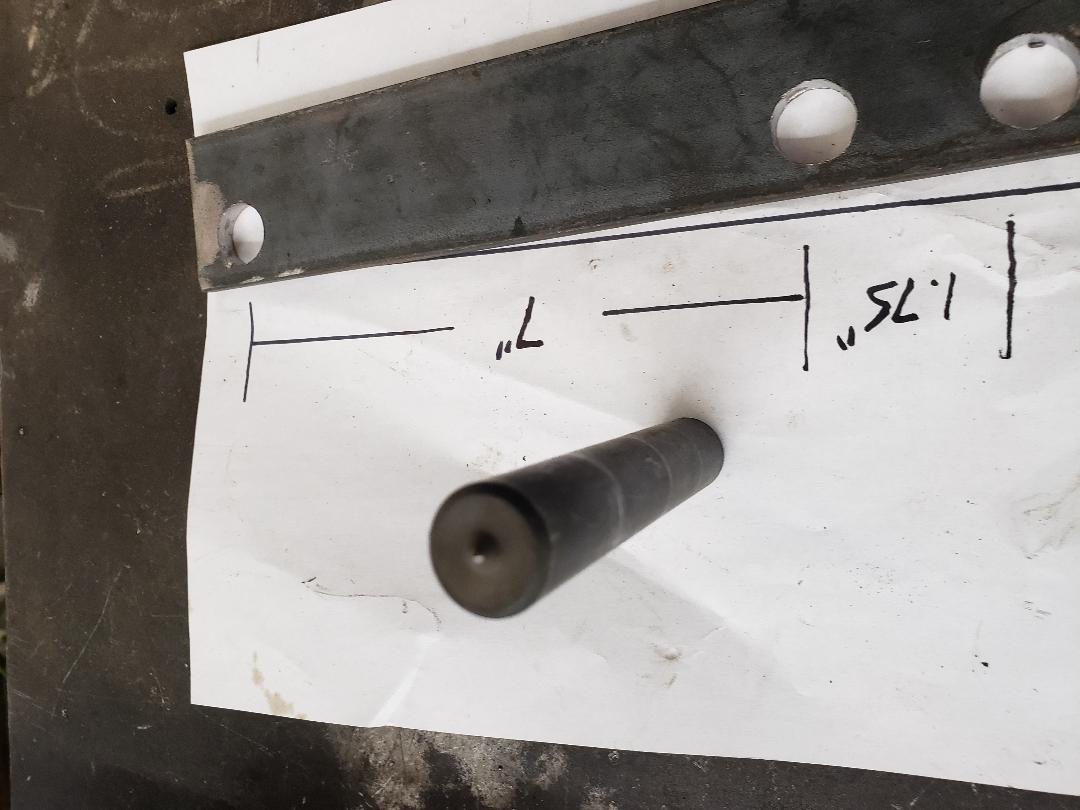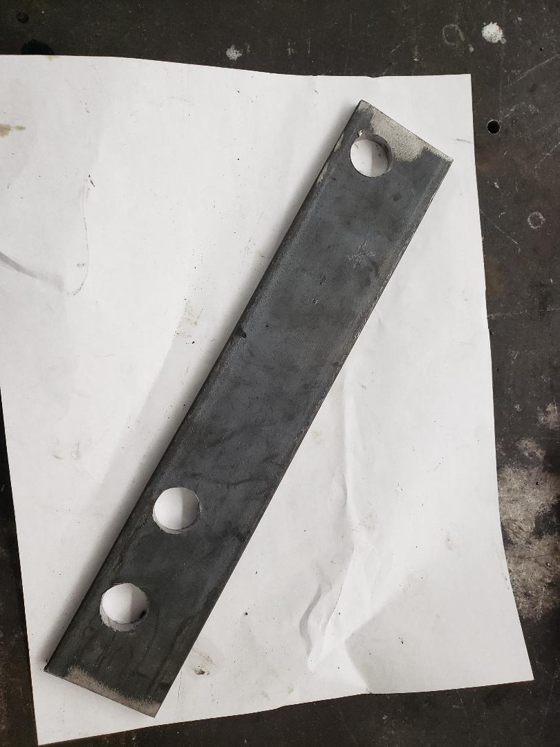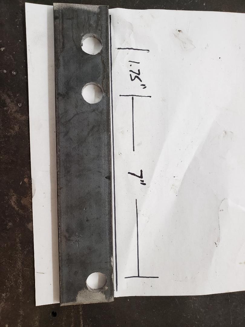 Decided to move the diff forward as per Stephem's suggestion. I limited the move to 1 3/4" to help maintain exhaust distance. Here is the template I made out of some scrap laying around. | I transfered the 7" bolt pattern of the differential mounting to the plate and added the hole 1.75"further along it. Using this I placed a bolt in the new hole (1.75" hole) and transfered the 7" pattern. | Here is a shot of the transfer punch. All that was left was drilling the 4 3/4" holes in the 1.5" thick by 2 1/2" differential support. Lots of chips. Sorry I didn't get any pictures of the actual support. | Got to start on some of the fun stuff. Here's the pass side motor mount to frame bracket. It'll be bolted in for ease of removal. | ||