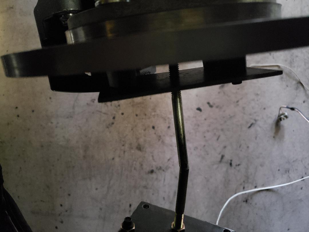Another view of the pass side mount. | This backing plate will go on the inside frame rail to distribute the load. | Here's the bracket installed. | Home made alignment tool.Look's pretty close. | ||
