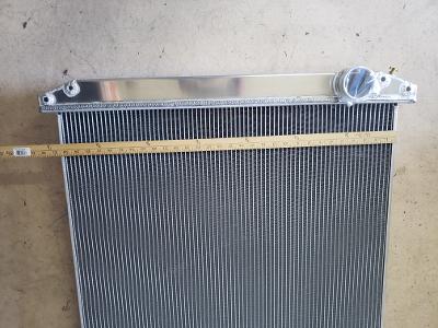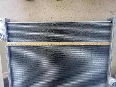 Here's the radiator I'll be using.30.63" wide core. | It will be used as a cross flow. 35.83" wide core. | It's a big dog for sure. They were used in Century class Freightliners with 14ltr detroits. Should work well with a 25" fan. Three core all aluminum. About 20% more surface area than the stock radiator. | (1 Comments) Something new in the mail today. | ||