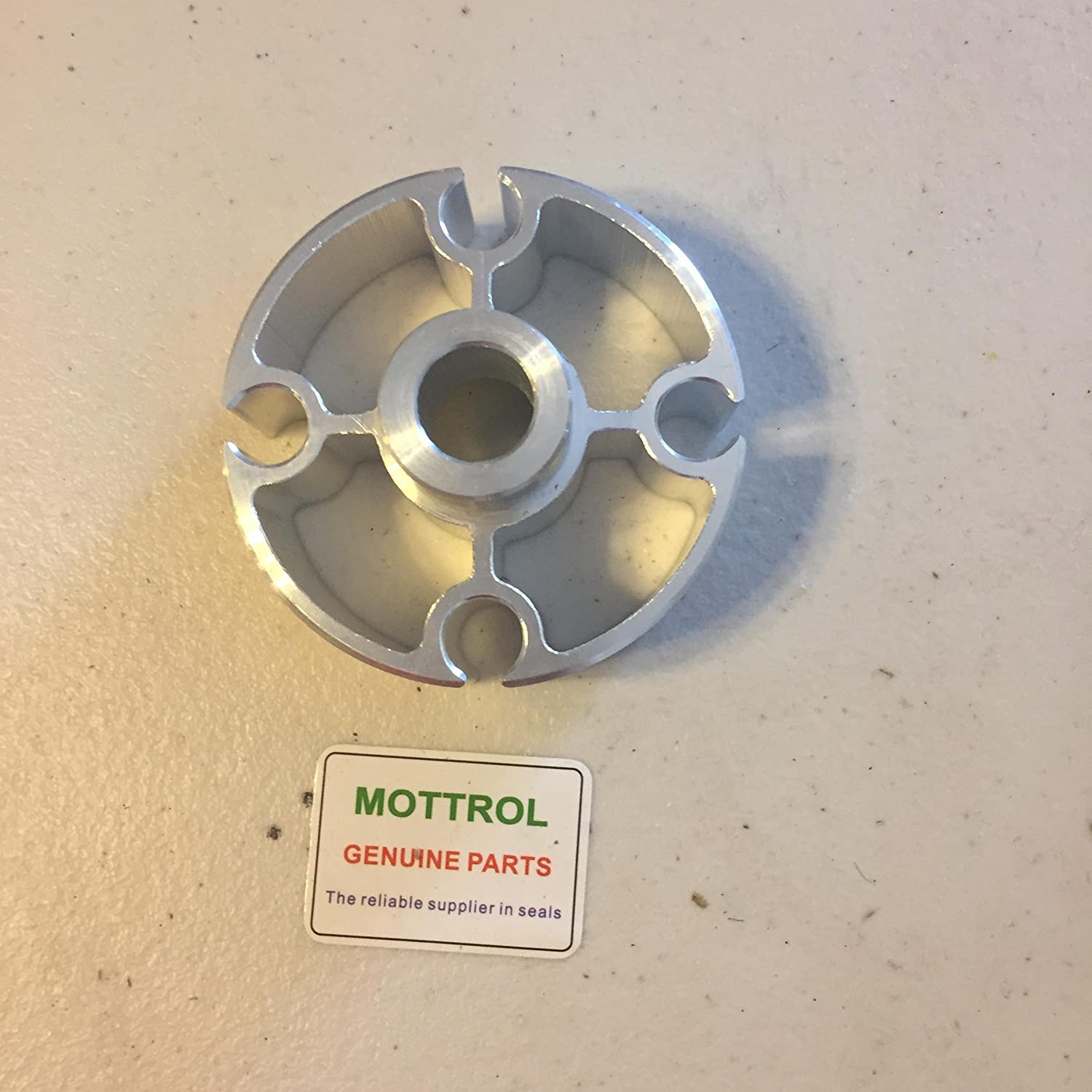 Fan pulley part #3943591. This unit is about 1" larger diameter than the stock one it replaced. It is the correct pilot and bolt circle size for the ACS fan. Installing this larger dia. fan will cause the fan belt to run against the upper water hose neck. My solution (as yet untested with significant run-time) was to route the fan belt on the outside of the tensioner. See pics following. | Fan spacer part #3910128 (Mottrol). You'll need one of these to mount the ACS fan, otherwise it don't have enough clearance behind it. The prices on line vary wildly on these so watch out. I got mine for around $30.00. | One of these babies will raise the fan hub about 4" on the front of the engine and bring it over the centerline of the crank. (Cummins Fan Support 6bt- 3913433/5263160). It will necessitate a slightly different routing of the fan belt, adding a new fan/pulley mount for the ACS fan and a 1" spacer to kick the new fan out yet another inch so it clears the front of the engine. See following pics. | Raising the fan on a 6-BT will require replacing the stock Ram truck fan-support with yet another option available for the Cummins. These engines were used for so many applications that this would not prove much trouble to deal with. This stock unit is about 2" off center to the right of the crank centerline and quite low on the front of the engine. | ||