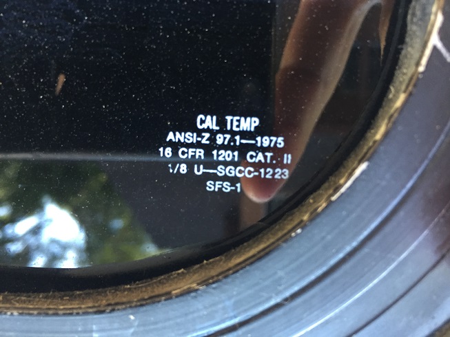 Images of the tempered glass and rivets from coach #621.