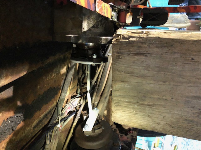 Before proceeding, double-check alignment. The big wood block the end of the trans is resting on is sitting on my motorcyle lift for vertical adjustment; meanwhile, the little ratchet strap in the upper right corner is wrapped around the tailshaft housing and served adequate for horizontal adjustment.